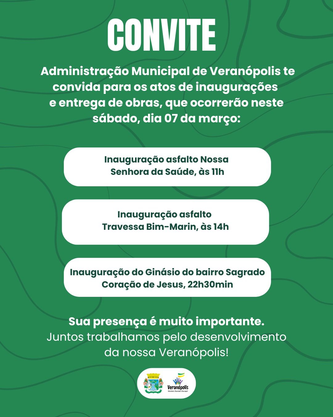 A Administração Municipal de Veranópolis convida a população para acompanhar uma série de atos oficiais de inauguração que ocorrerão neste