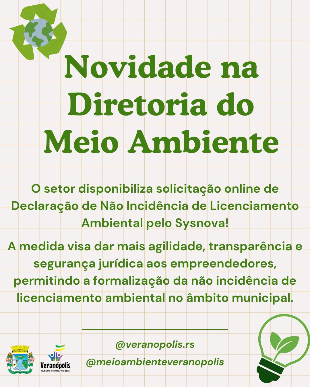 A diretoria do meio ambiente agora disponibiliza, de forma online pelo sistema Sysnova, a solicitação da Declaração de Não Incidência