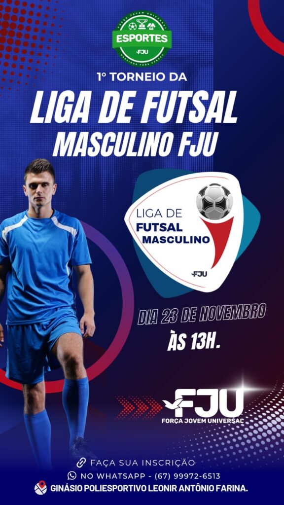 A Força Jovem Universal (FJU) de Veranópolis realiza, no domingo, dia 23 de novembro, o 1º Torneio da Liga de Futsal Masculino FJU, evento que promete reunir jovens atletas da cidade e da região em uma tarde de integração, esporte e confraternização. A competição está marcada para iniciar às 13h, no Ginásio Poliesportivo Leonir Antônio Farina.