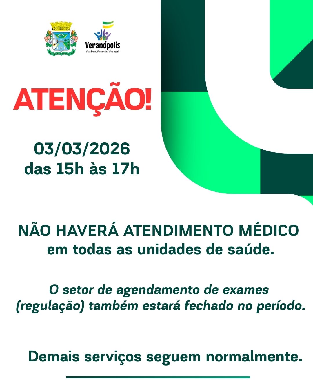 Por esse motivo, não haverá atendimento médico das 15h às 17h em todas as Unidades de Saúde do município. O setor de agendamento de exames (Regulação) também ficará sem atendimento nesse período.
