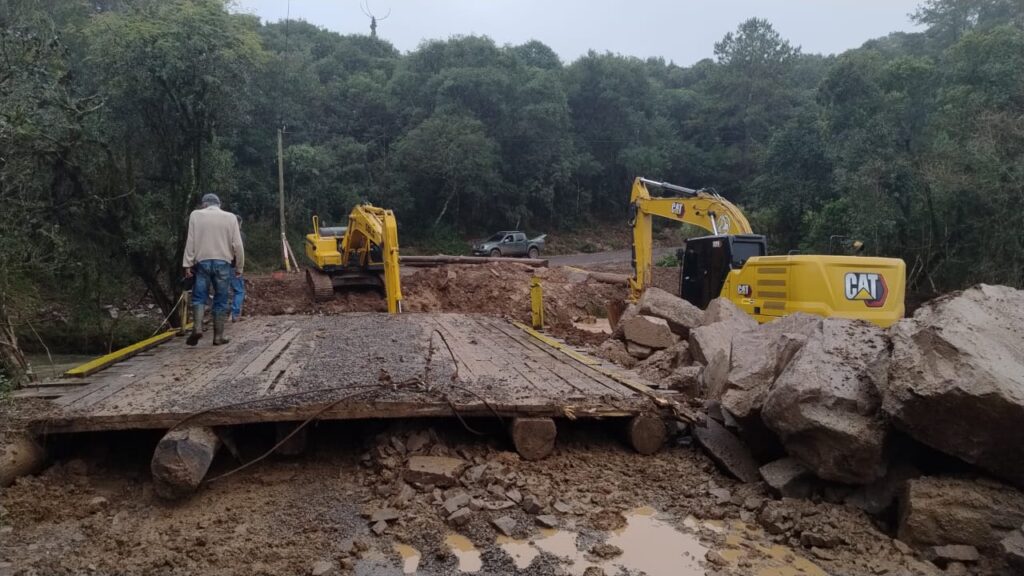 Equipe da Secretaria de Infraestrutura de Veranópolis está realizando manutenção na ponte de São José da Primeira.Devido as chuvas do final de semana as cabeceiras da ponte precisam ser reforçadas e equipe contratada já está trabalhando no local.Ainda não há previsão de quando será finalizado esse serviço e o trânsito segue interditado.Fotos: SEINFRA