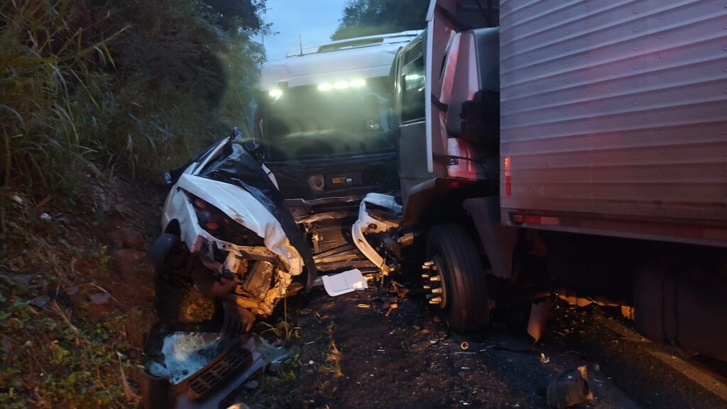Acidente com três caminhões e um carro deixa um morto na ERS 446