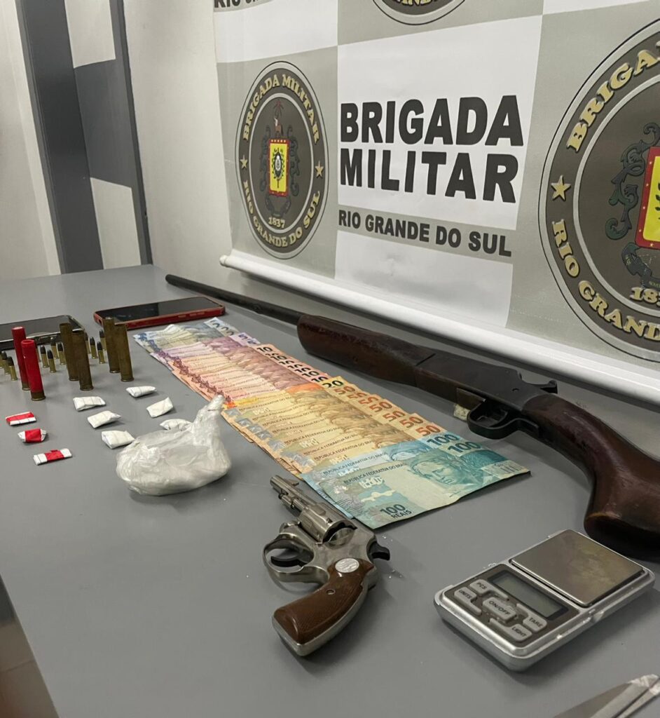 Brigada Militar prende um homem e uma mulher por tráfico de drogas e posse irregular de arma de fogo