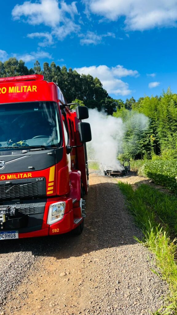 Incêndio consome veículo na Capela Santo Isidoro, em Nova Prata