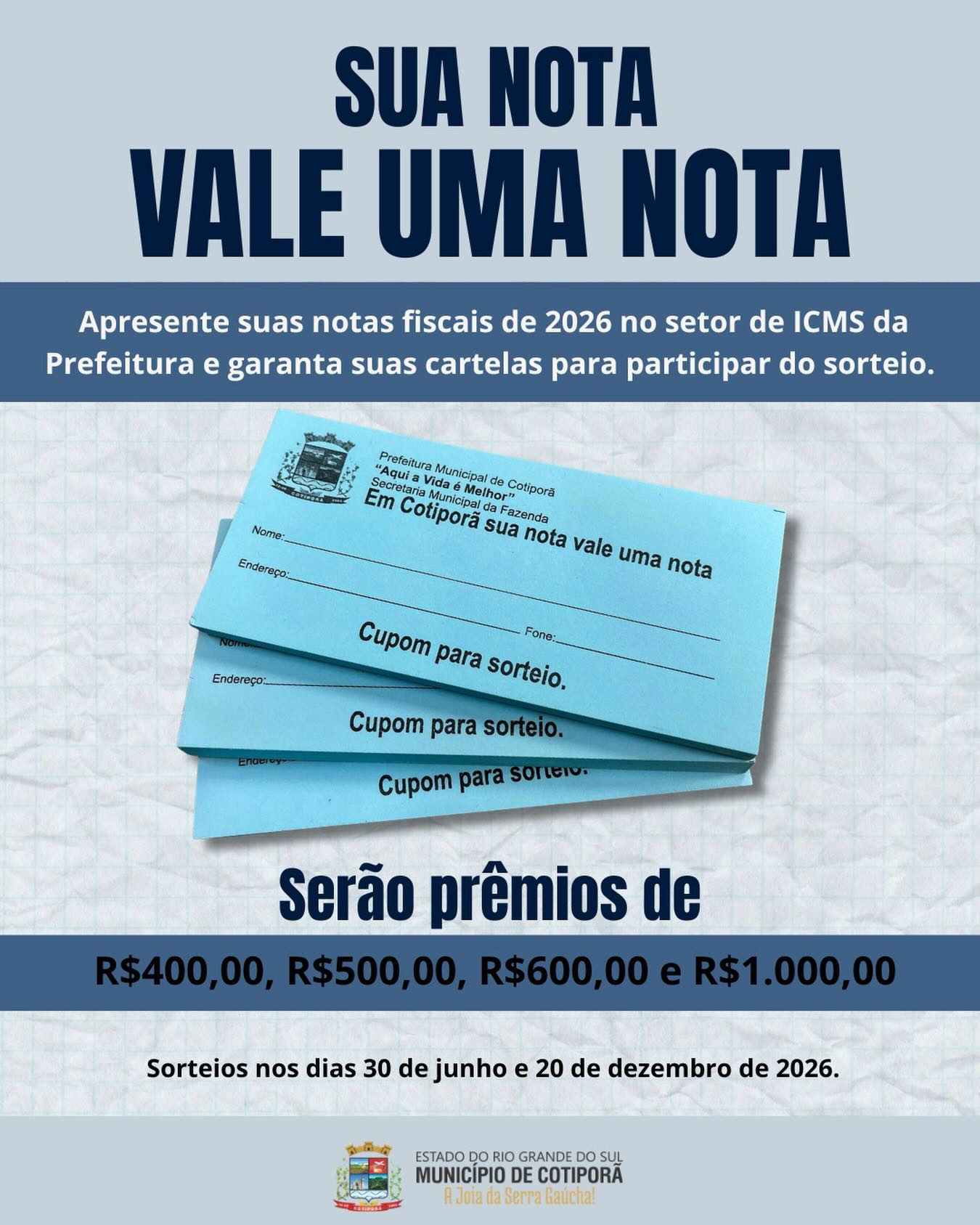 A campanha que valoriza o comércio local e incentiva a emissão de notas fiscais está de volta! Ao participar, você troca seus documentos por cartelas e concorre a prêmios em dinheiro.