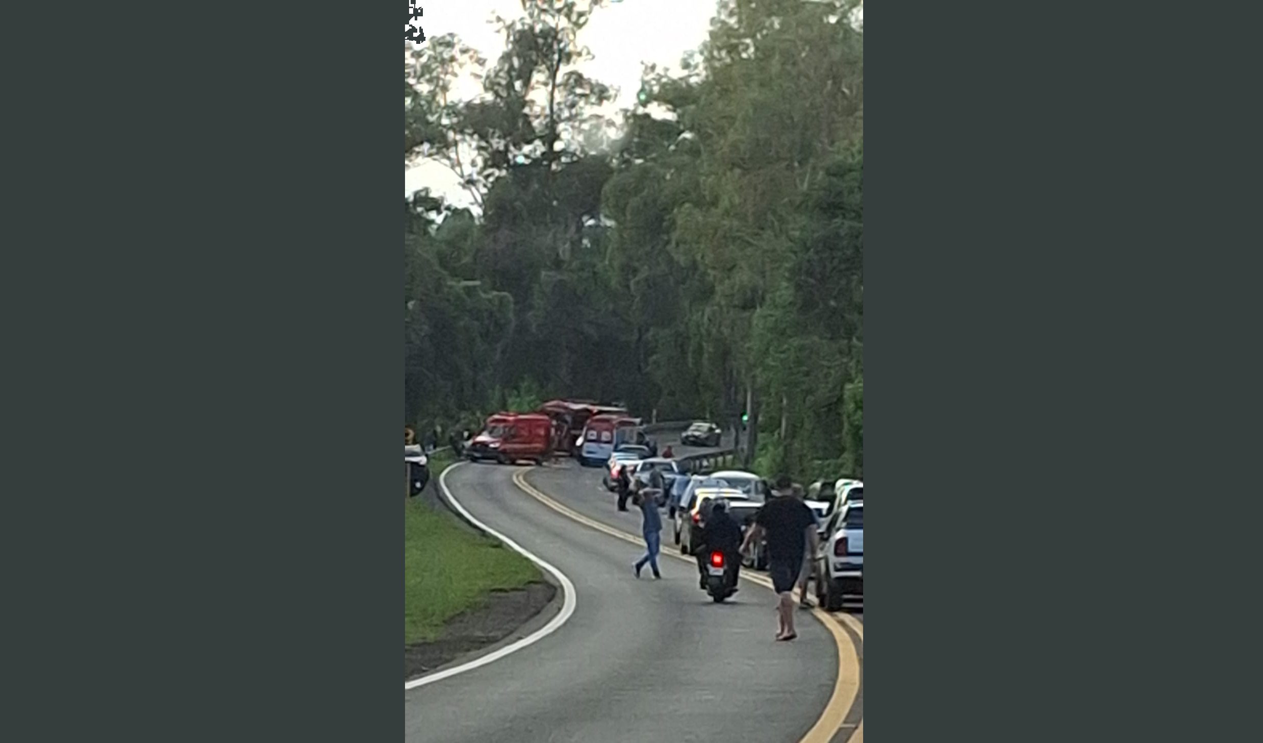 - Bloqueio e Lentidão: O fluxo está extremamente lento e, em determinados momentos, totalmente interrompido para o trabalho dos socorristas e a remoção dos veículos.