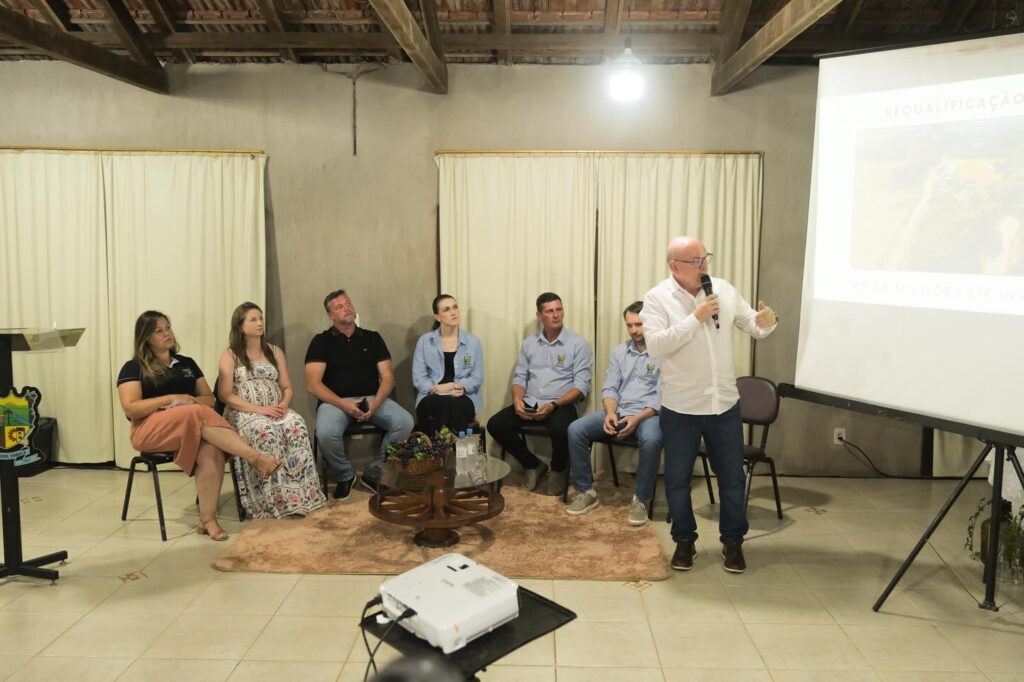 O encontro, intitulado “Colhendo resultados, semeando novos caminhos”, foi marcado pelo diálogo direto entre o poder público e a comunidade. A mesa foi composta pelo prefeito Nelton Carlos Conte, pelo vice-prefeito Rogério Binda, além de secretários municipais, vereadores e servidores que detalharam as ações em curso no município.