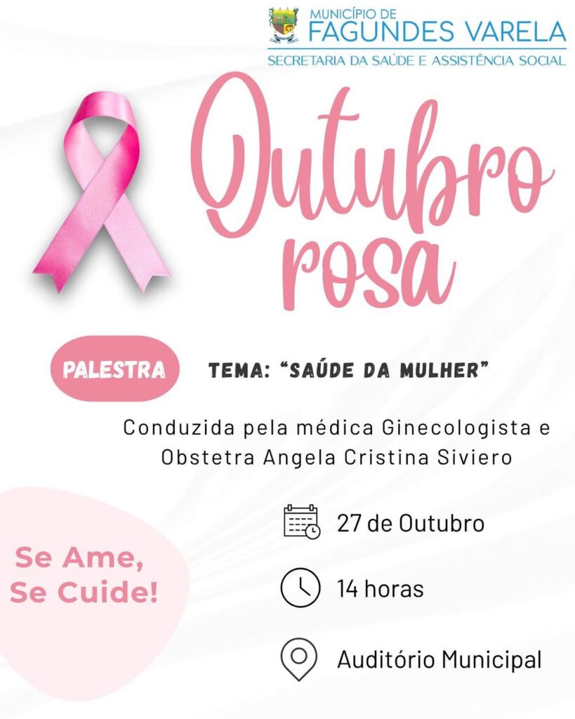 Em alusão ao Outubro Rosa, mês dedicado à conscientização e prevenção aos cânceres de mama e de colo do útero, a Administração Municipal de Fagundes Varela, por meio da Secretaria da Saúde e Assistência Social, promove uma atividade especial voltada às mulheres do município.