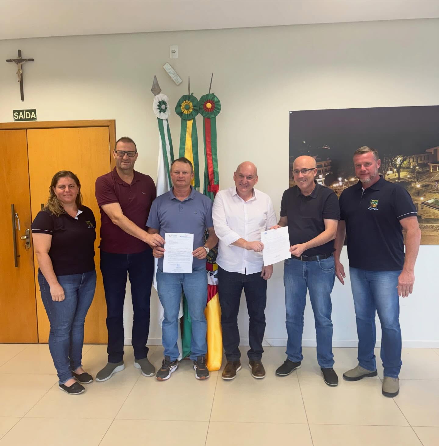 O documento foi entregue ao prefeito Nelton Carlos Conte pelos assessores Paulo Giroldi e Pita Fanton, representantes do gabinete do deputado federal Osmar Terra (PL).