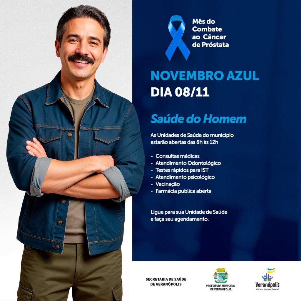 A Prefeitura de Veranópolis, por meio da Secretaria de Saúde, realiza no sábado, dia 8 de novembro, uma ação especial em alusão ao Novembro Azul, campanha voltada à saúde do homem e à prevenção de doenças.