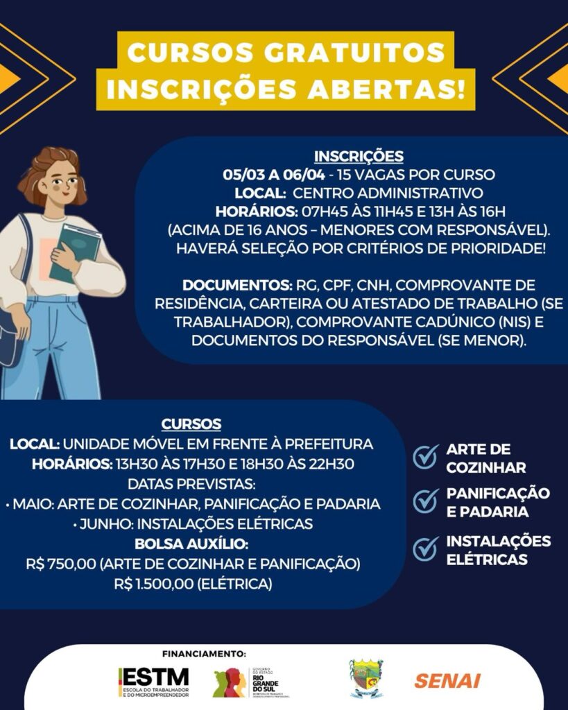 A administração municipal orienta que os interessados procurem o local o quanto antes para garantir participação no processo de seleção e aproveitar a oportunidade de qualificação profissional gratuita.