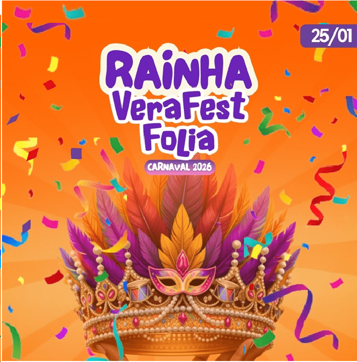 👑 Novidade deste ano: o Concurso da Rainha do VeraFest Folia 2026, que será realizado no dia 25 de janeiro! O concurso valoriza a juventude, a simpatia e a representatividade cultural da nossa cidade.