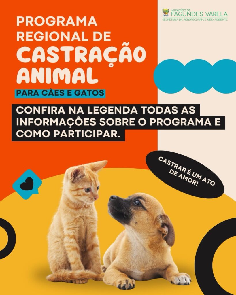 As inscrições para o Programa Regional de Castração de Cães e Gatos entram na reta final em Fagundes Varela. Os interessados têm até sexta-feira, dia 13, para garantir participação na iniciativa, que oferece 150 vagas e tem como objetivo promover o bem-estar animal e contribuir com a saúde pública no município.