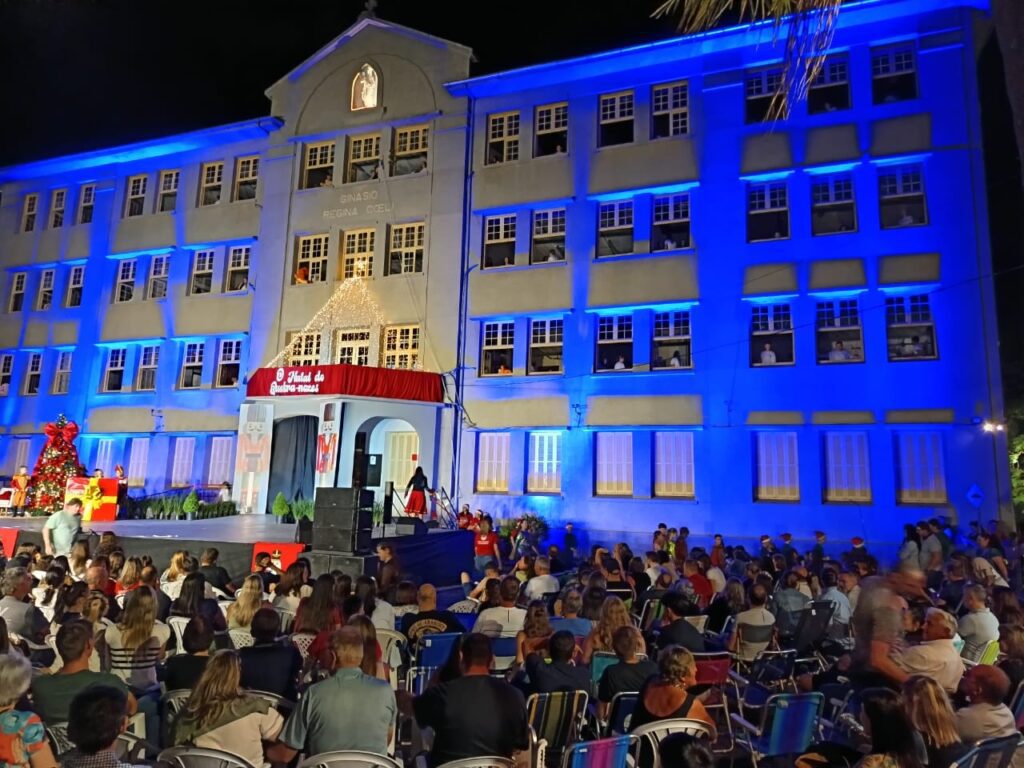 O Colégio Regina Coeli realizou, na noite desta quinta-feira, dia 27, sua tradicional celebração de Ação de Graças, reunindo alunos, famílias e moradores para um espetáculo especial que marcou o início das comemorações de fim de ano. Neste ano, o tema escolhido foi “O Natal do Quebra-Nozes”, uma adaptação do clássico conto natalino que encantou o público com apresentações repletas de emoção.
