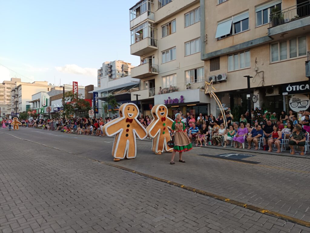 A noite deste domingo, 7 de dezembro, foi marcada por emoção, brilho e espírito comunitário no Centro de Veranópolis. A cidade recebeu a primeira edição do Desfile Cênico “Os Fabricantes do Natal na Terra da Longevidade”, uma das grandes novidades do Natal da Longevidade 2025. O evento, que iniciou no final da tarde, reuniu famílias inteiras ao longo da Avenida Júlio de Castilhos até a Praça XV de Novembro, transformando o coração do município em um grande palco de celebração natalina.