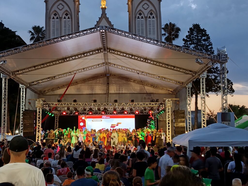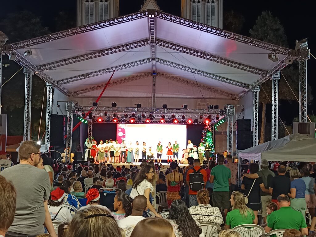 Após o desfile, a festa continuou com o show Christmas Bells, que animou a plateia enquanto aguardava a entrada mais aguardada da noite: a chegada oficial do Papai Noel, recebida com aplausos e encantamento das crianças.