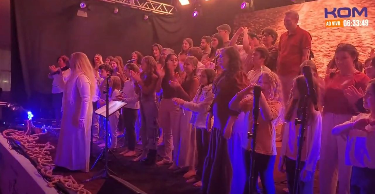 Na noite deste domingo, dia 19, o salão da Gruta Nossa Senhora de Lourdes foi palco de uma emocionante apresentação dos Coros de Veranópolis, que levaram ao público o espetáculo “Na Bagagem, Um Canto!”. A atividade integrou a programação da 32ª Feira do Livro de Veranópolis, encerrando o final de semana com música, emoção e celebração à cultura local.